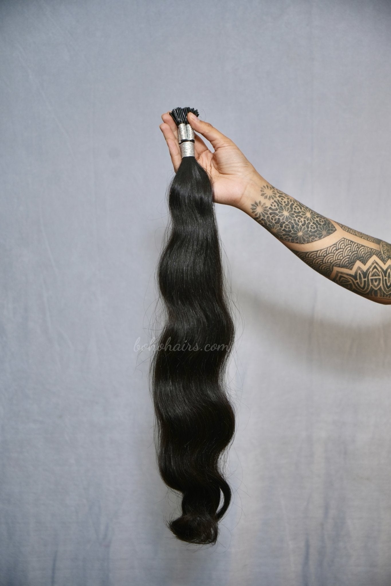 Premium 100% human hair glue strands for permanent hair extensions. Ready to install and fully double drawn, giving a heavy, voluminous look right till the tips. Soft, natural-looking, and available in many shades to perfectly match your hair.