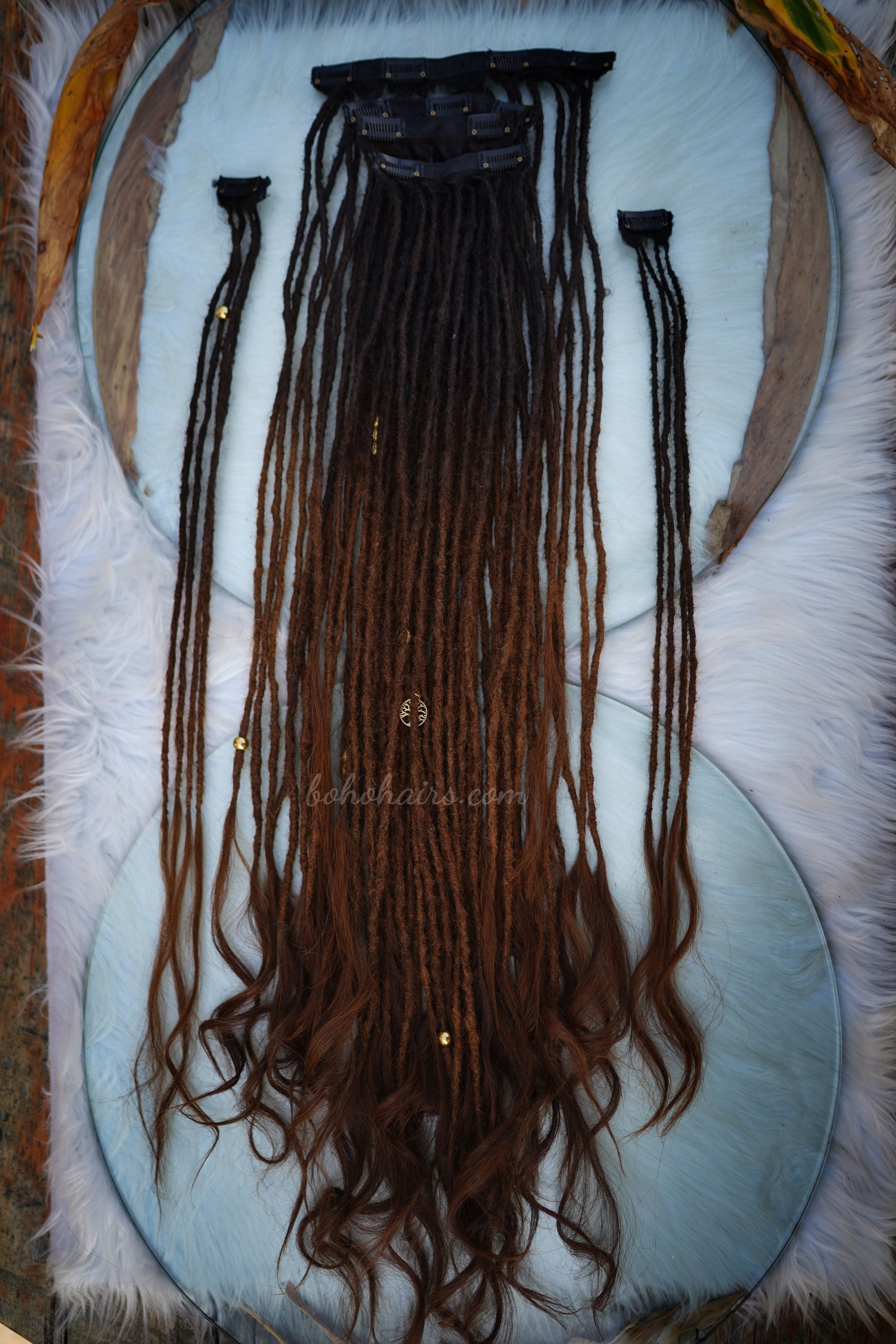 70 dreadlocks stitched on lace with clips, in 6 patches for perfect blend, Full Head Coverage. Set of 6 Clip-On patch Length Options: 22 inches, 30 inches, 35 inches Type: Micro Dreadlocks with Open Hair Tips (6 clip-on patch) Material: 100% Human Hair Hand Made with Love