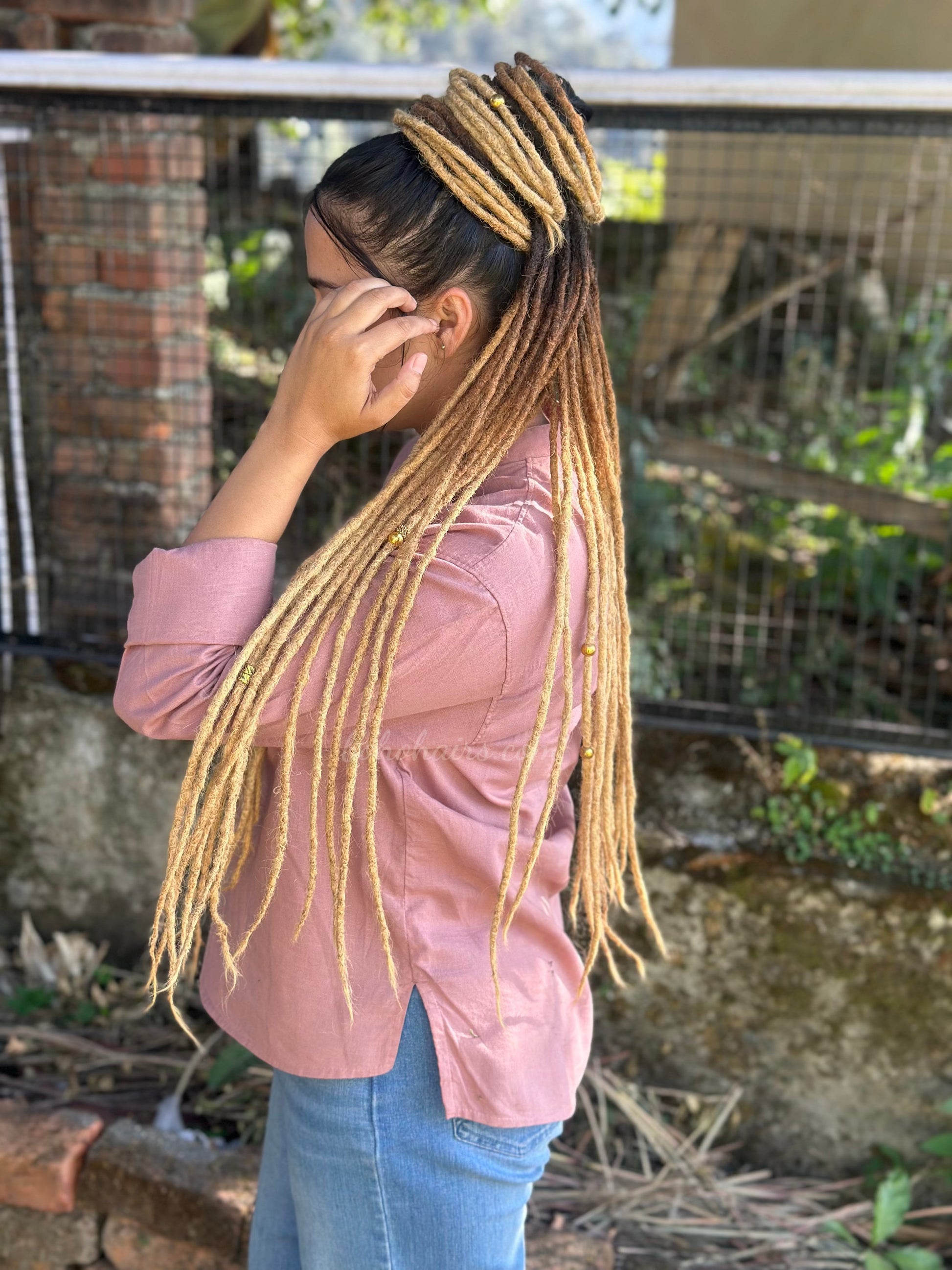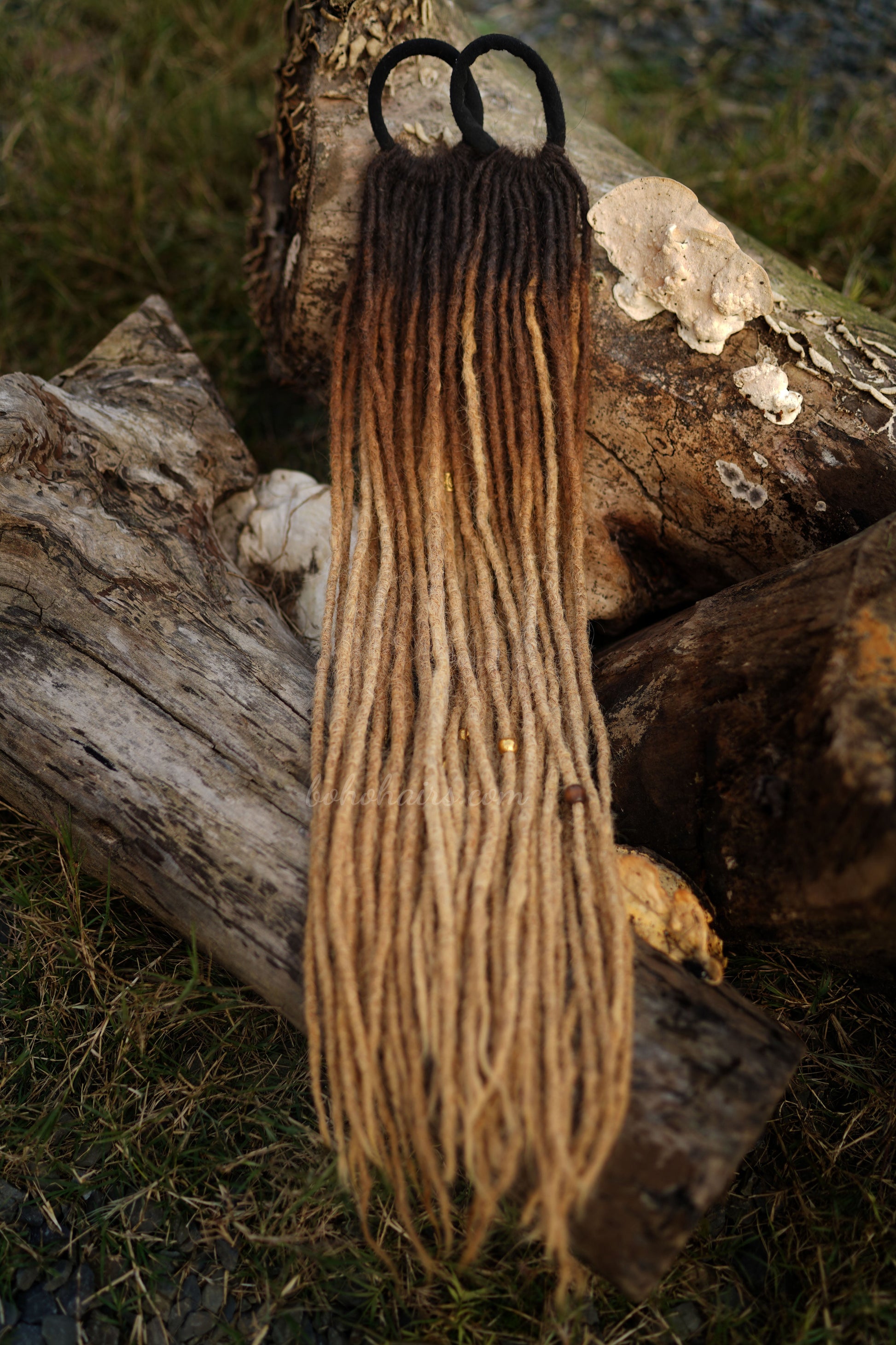 Number of Dreadlocks: 46 Length Options: 22 inches, 30 inches, 35 inches Type: Medium thickness dreadlocks, Locked Tail (2 rubber band set) Material: 100% human hairHand Made with Love